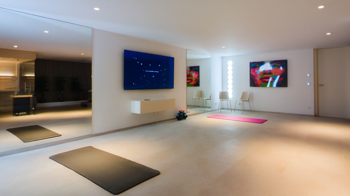 Im Untergeschoss befindet sich ein Fitness- und Spa-Bereich mit Whirlpool und Sauna, ein Badezimmer, ein Heimkino, eine Weinbodega, sowie der Zugang zur geräumigen Tiefgarage für bis zu 4 PKW und den Technikraum.